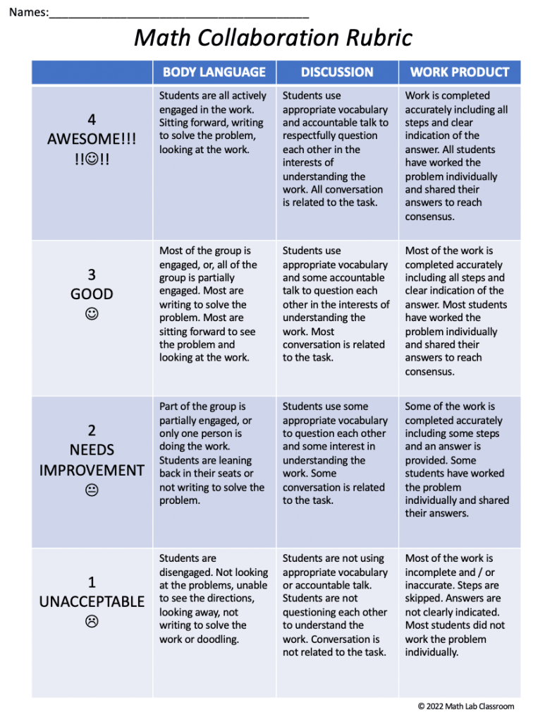 In a very short time my students really started to learn how to help each other! I continued using the rubric once a week and eventually, I started to see more collaboration even when I didn’t formalize it with the rubric.