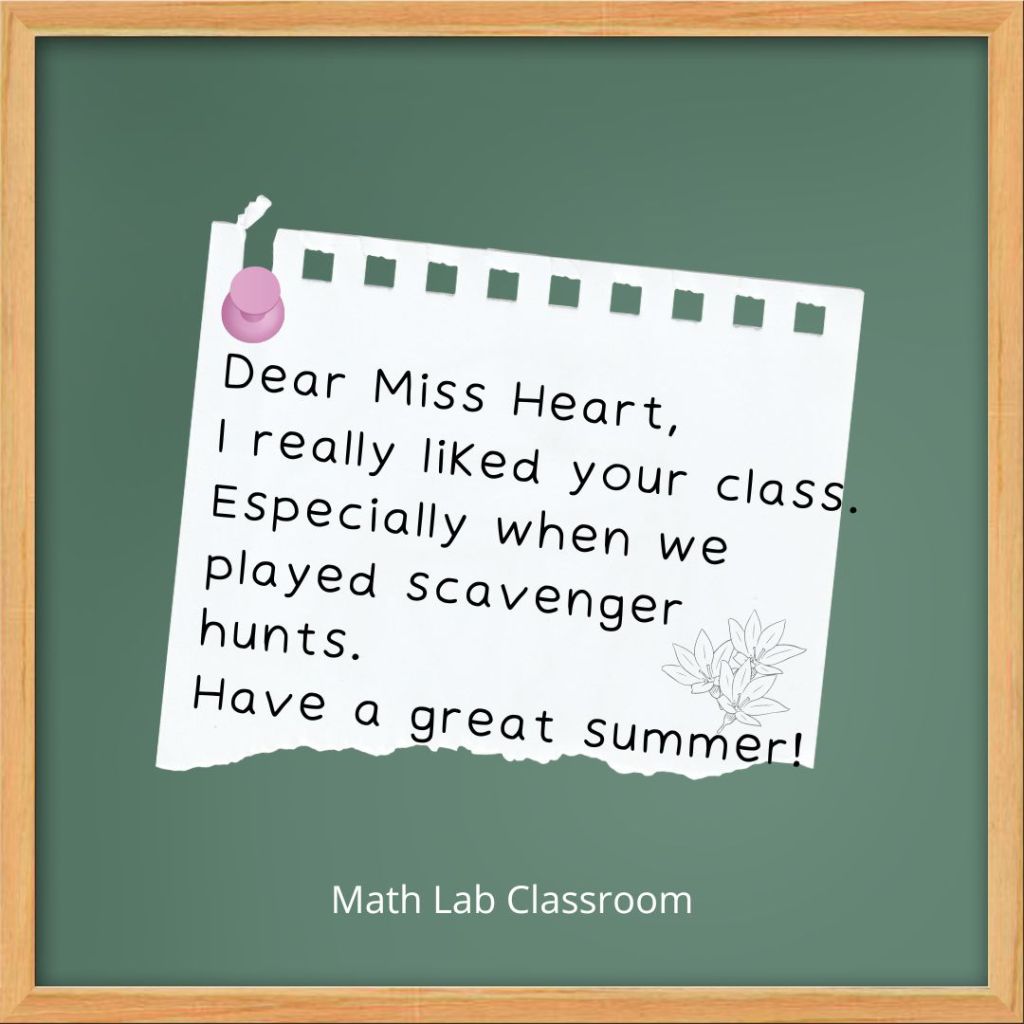 - What message would you like to send to next year’s class? (I actually had kids record these one year and showed them to my next class….super cool!)